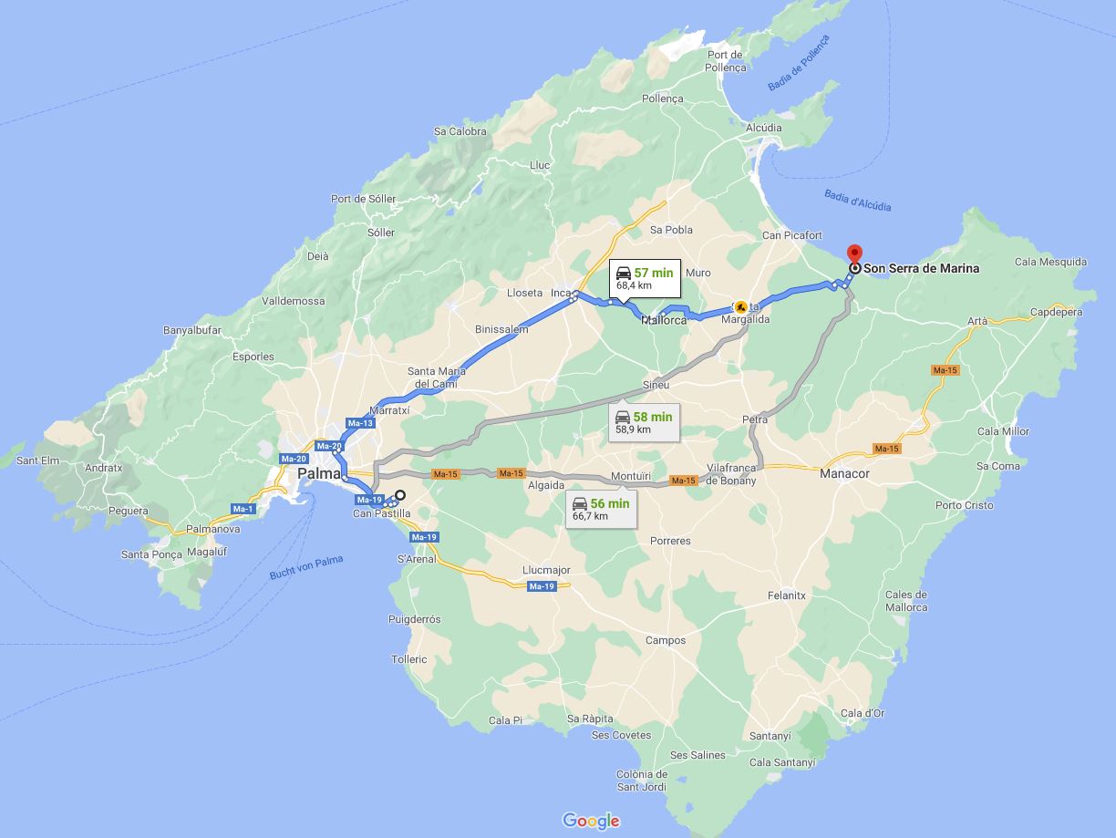 You will reach Son Serra de Marina after a few minutes. There you will find 10 restaurants and two smaller but fully stocked supermarkets.